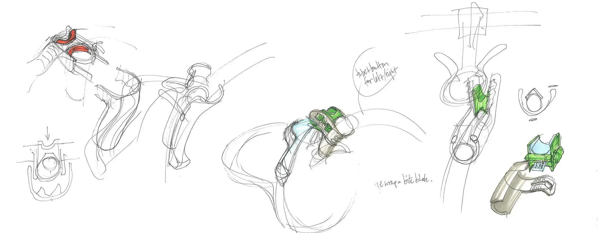 The solution principle seems simple, but proper execution turned out to be quite complicated. Major ergonomic research was conducted to figure out how to clamp the tube onto the cheekbones. All shapes and sizes of heads and faces were examined. Numerous prototypes were created based on this research, and these prototypes were subsequently tested on lots of different heads.