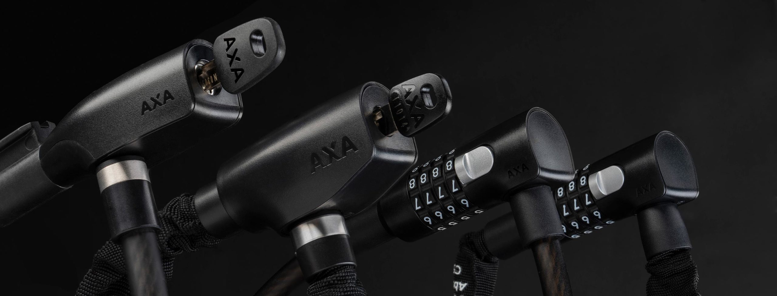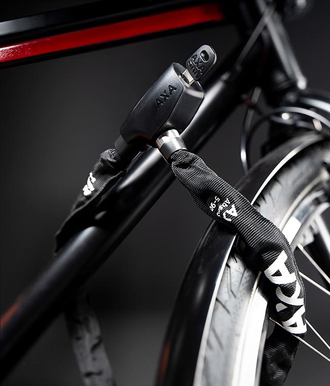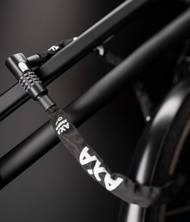 The AXA Absolute and Resolute range comprises light cable locks suitable for a child’s bicycle as well as heavy chain locks approved by bicycle insurance companies. The range includes cable and ring locks with combination locks as well as versions with a key. The AXA safety index varies from class 3 to 14.