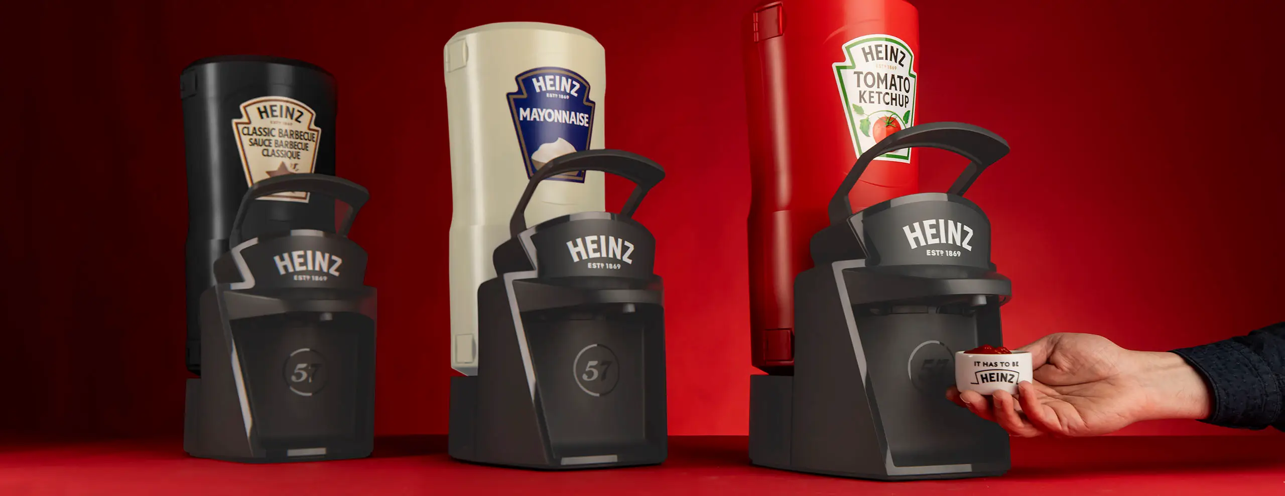 Voor een bedrijf als Kraft Heinz is merkherkenning van groot belang, zeker bij een dispenser in een ‘Front of House’ positionering. Ons ontwerp verwijst duidelijk naar het beeldmerk van Kraft Heinz en de cartridge weerspiegelt de merkidentiteit. Dankzij zorgvuldige detaillering straalt de dispenser de kwaliteit uit waar Kraft Heinz voor staat.