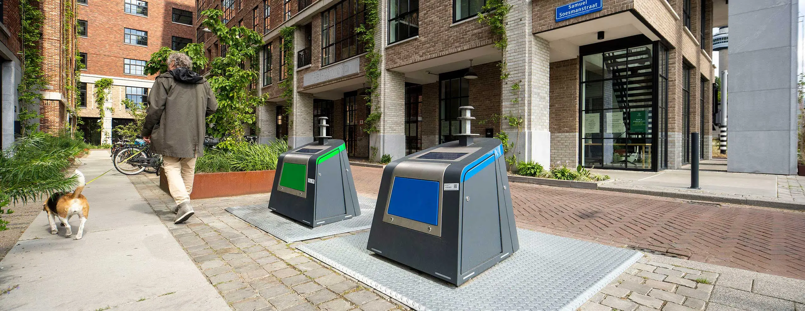 Het bovengrondse volume met zijn cilindrische omvattende hoofdvorm is schuin gesteld en maakt, ook vanaf grotere afstand, duidelijk aan welke kant de inwerpopening zich bevindt en hoe je de container benadert. Het naar de gebruiker toelopende vlak op de bovenkant van de container, voorzien van een zonnepaneel en elektronische sensoren, loopt in een afgeronde hoek door naar de openingen voor de diverse soorten afval. Onderzoek en terugkoppeling van bewoners laat zien dat de vorm intuïtief goed werkt.