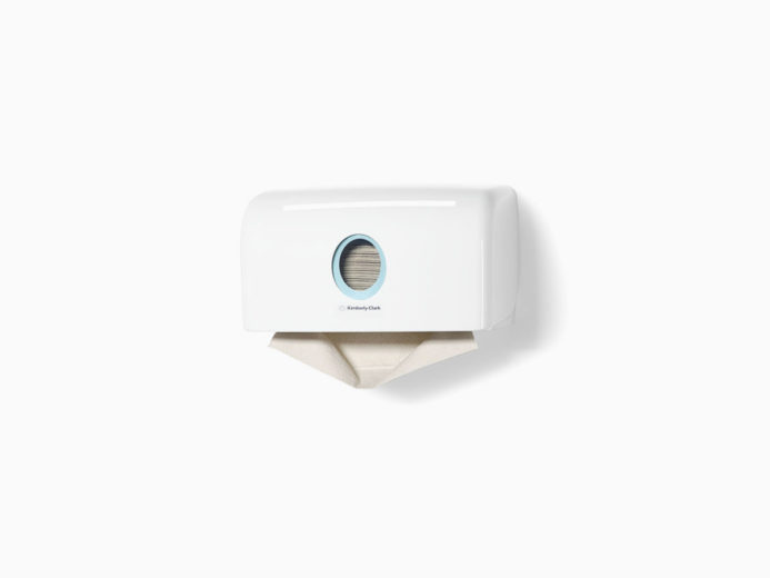Herkenbaar design met specifieke kenmerken als afgeronde hoeken en een high-gloss uitstraling, versterkt de branding van Kimberly Clark. AQUARIUS* heeft dit allemaal. Een aantrekkelijke buitenkant is één aspect van het ontwerp. Een tweede aspect is om het ontwerp te verbinden met de eisen voor hygiëne, functionaliteit en betrouwbaarheid. Het strakke ontwerp zonder randen waar vuil of stof zich kunnen ophopen, zorgt ervoor dat de dispensers snel en eenvoudig schoon te houden zijn. En dat bespaart tijd (One-Wipe-Clean principe).